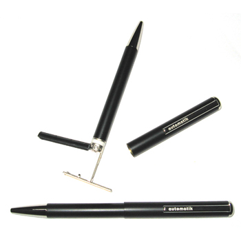 Fino y elegante Bolígrafo, el cual tiene un práctico sello de goma en su parte posterior. Está especialmente pensado para aquellas personas que disfrutan de la elegancia de un sello personal en cada uno de sus documentos.