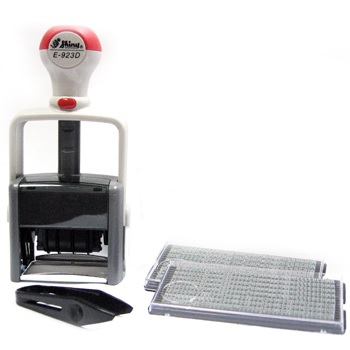 Práctico Timbre Numerador Manual con bandas de goma intercambiables. Su uso se acompaña de un tampón de tinta para sellos de goma Automatik.