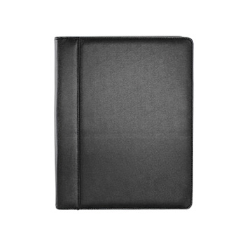 Carpeta Simil Cuero Negro. En el interior incluye Bolsillos para documentos tamaño A4, Compartimentos para Tarjetas Y Porta-Lápices.