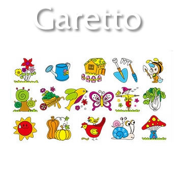 Practico set de timbres para ninos contiene timbres de goma de 2 x 2 cms aprox y tampon negro. Contiene 16 figuras con motivos de granja como abeja, regadera, flores, herramientas, casa, cactus, mariposa, ave, espantapajaros, sol, gallina con pollito, carretilla, calabazas, verduras, casa hongo y caracol.