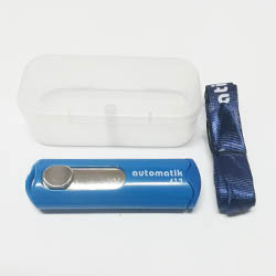 Práctico Timbre Tipo sello de bolsillo, manual, con tampón incluído, el cual puede ser recargado con la tinta para sellos de goma Automatik o en el caso de recambio sólo puede ser efectuafo por el fabricante.